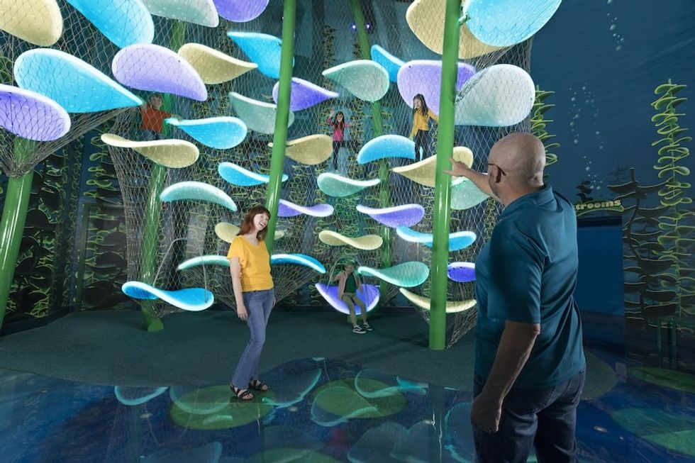The Kelp Forest, a 24-foot climbing structure for kids, is next.