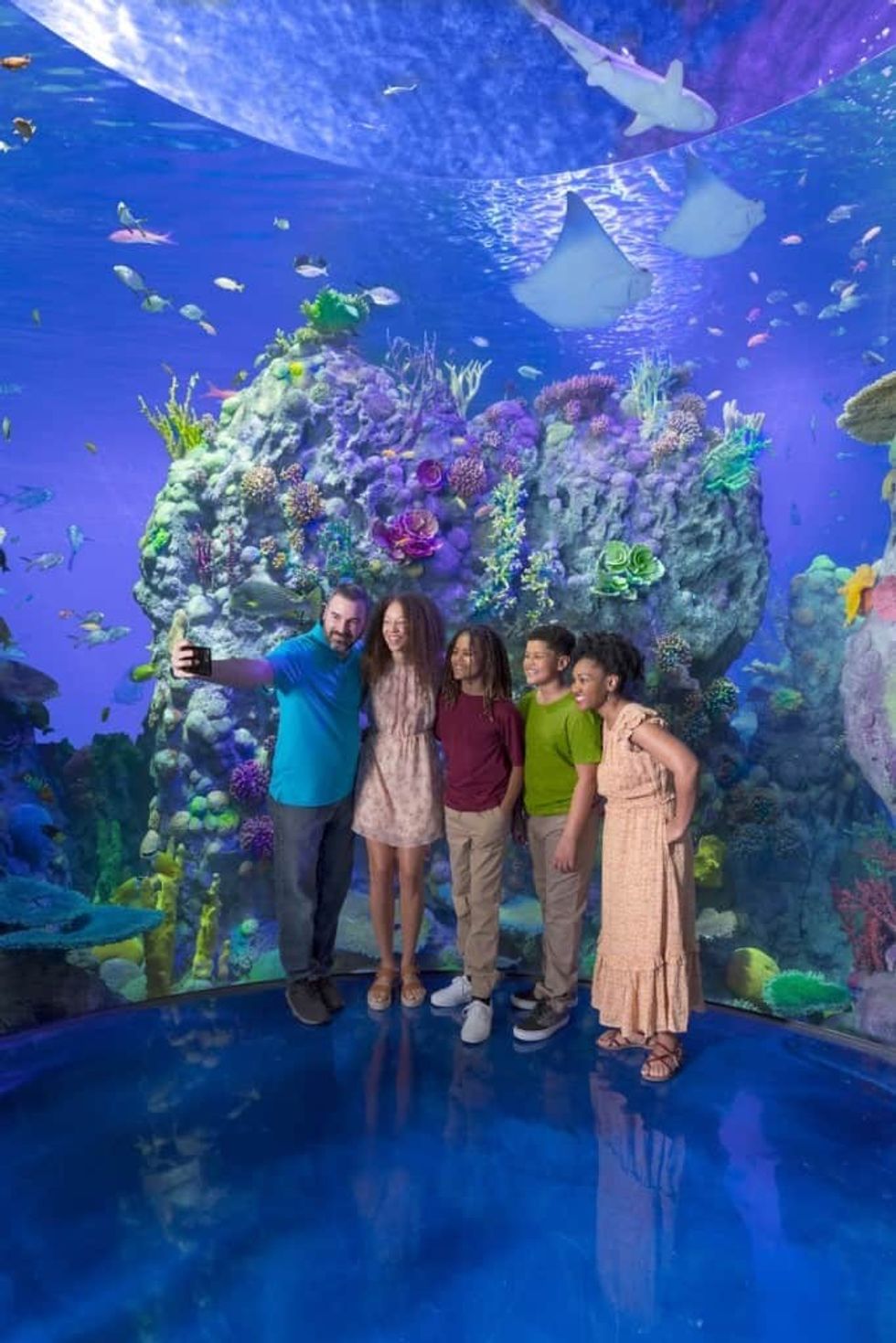 Coral reef environments are a special focus; the coral reef messaging reflects the aquarium’s commitment to preserving ocean life and its partnership with the Coral Restoration Foundation.
