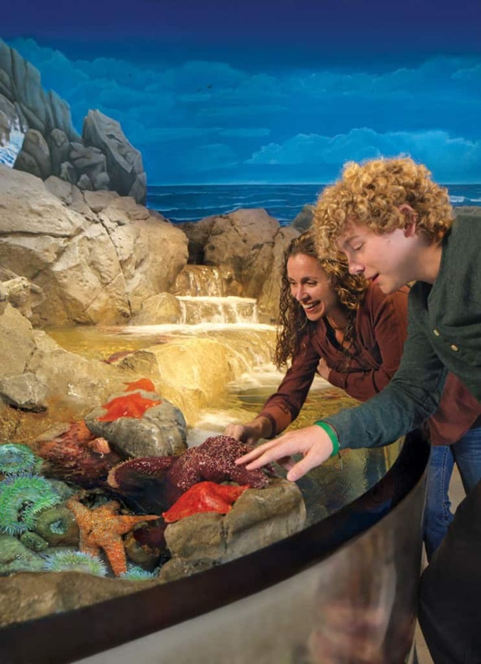 The final area is the Coral Reef with two touch tanks, where visitors can encounter marine creatures close-up. One features rays and sharks, while the other has surging water with tide-pool animals such as anemones and starfish; a photogenic Instagrammable moment.