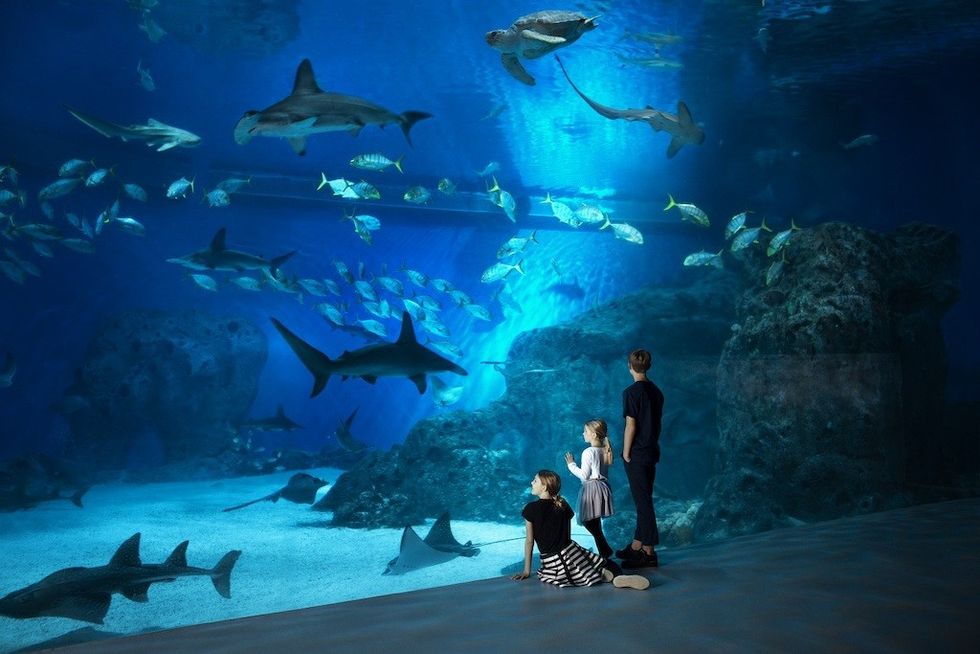 The aquarium is home to 350 species of marine life, including 10 types of rays, and features three different zones: The Jungle, The Reef and The Deep Sea. It is home to the largest curved glass aquarium exhibit in the world, which gives visitors the feeling of being immersed in the underwater universe.