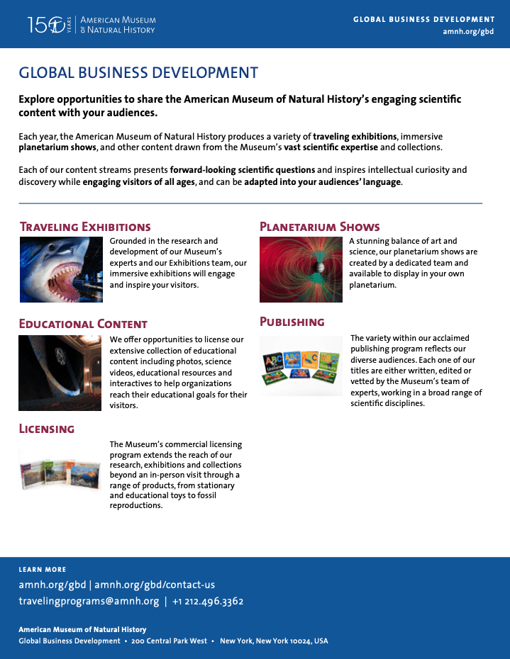 Engage and inspire audiences with exhibitions and content from the American Museum of Natural History