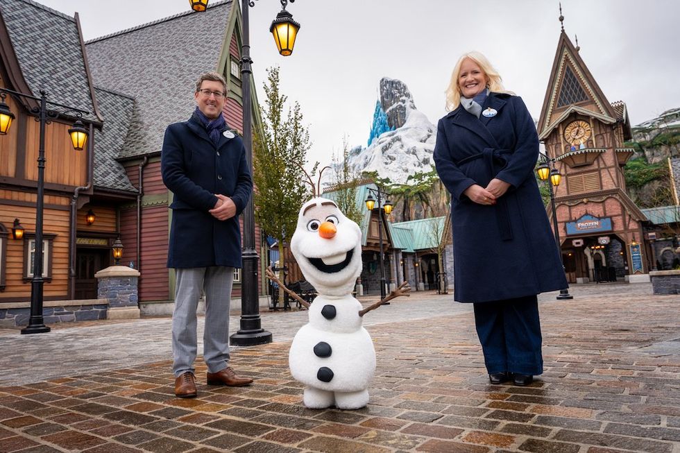 The expansion is anchored by the new World of Frozen. The recreated Kingdom of Arendelle, built to life-size scale, will include a new family-friendly ride, a daytime show, a royal encounter with Queen Anna and Elsa, and interactions with popular characters, including a life-sized Olaf, made possible by next-gen robotic figures from Walt Disney Imagineering.