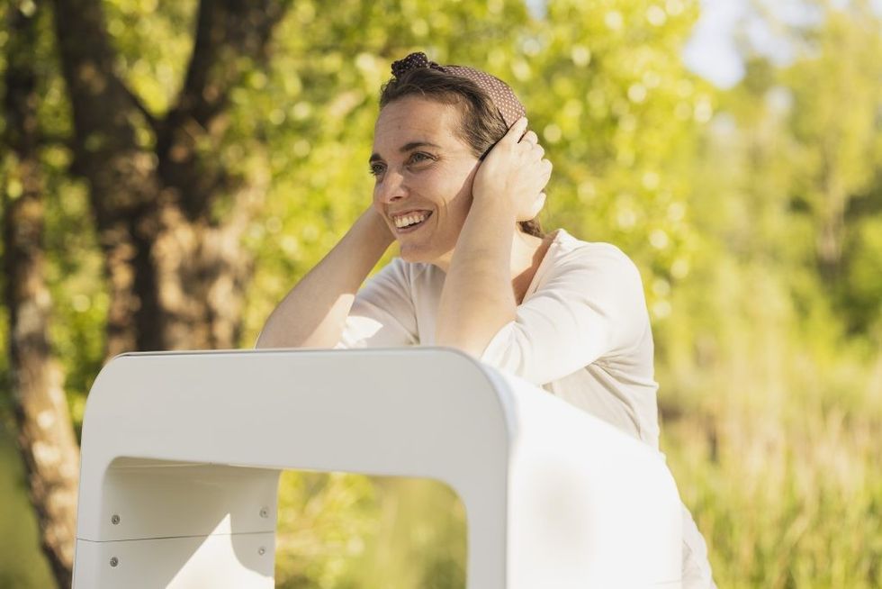 The system works by having the sound travel through vibrations directly through the bones to the inner ear. On display, the team were showcasing the Whisper Desk, as well as variants that can be placed on a wall, and a chair that transmits vibrations when sat on.