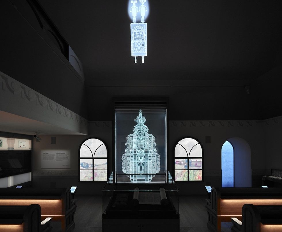 The journey begins with a cinematic theatre experience, before moving into the lively Marketplace gallery, where soundscapes, projections, and interactive media immerse visitors in shtetl life. The following spaces explore the dreams of youth, the strength of faith and tradition, and feature historic imagery, cinematic reenactments, and salvaged synagogue elements.