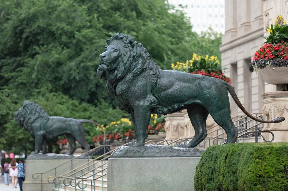 The museum's landmark Beaux-Arts main building is distinguished by its bronze lion statues at the entrance. These lions have become emblematic of the institution. Designed by Renzo Piano, the Modern Wing opened its doors in 2009, adding 264,000 square feet of space and marking one of the largest expansions in museum history.