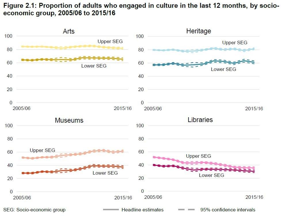 The new Taking Part survey on diversity trends explores how cultural engagement between different demographic groups (ethnicity, socio-economic and disability) has changed between 2005-06 and 2015-16.