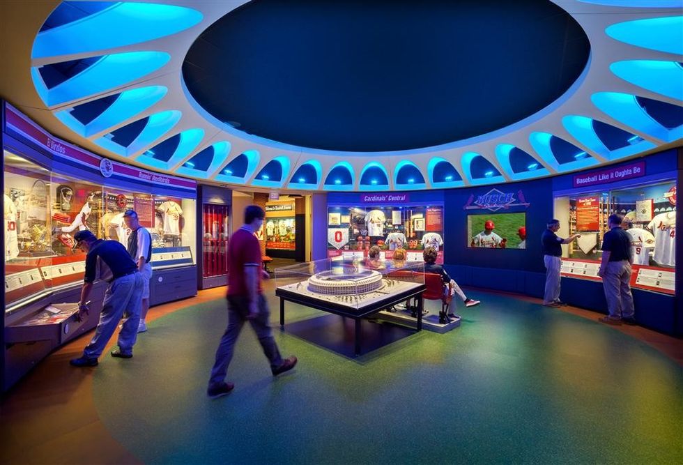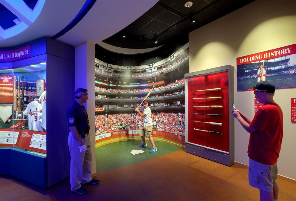 Located on the second floor of Ballpark Village, the St. Louis Cardinals Hall of Fame and Museum showcases one of the greatest club collections in all of Major League Baseball, celebrating and exploring thousands of stories, victories, and heroes from the late 1800s to today. The Museum walks visitors through the history of the Cardinals, beginning with the early days of Sportsman’s Park through today’s celebrated stadium and team. Each stage of the Museum has been carefully designed to reflect the historic stadium architecture and the period being explored through changing photographic pallets, case designs, and park aesthetics like appropriate woodwork and steel trusses.