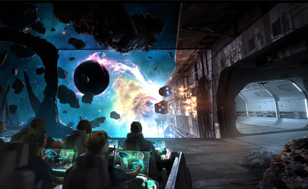 An interactive dark ride where guests come to decision points throughout the ride and, through their interactions, they choose which path to take and control the outcome.Guests are confronted with interactive screens and depending on their actions, they are sent off on a relevant path. As the story continues, options are continuously presented. The direction of the ride and the outcome is controlled by the guests.