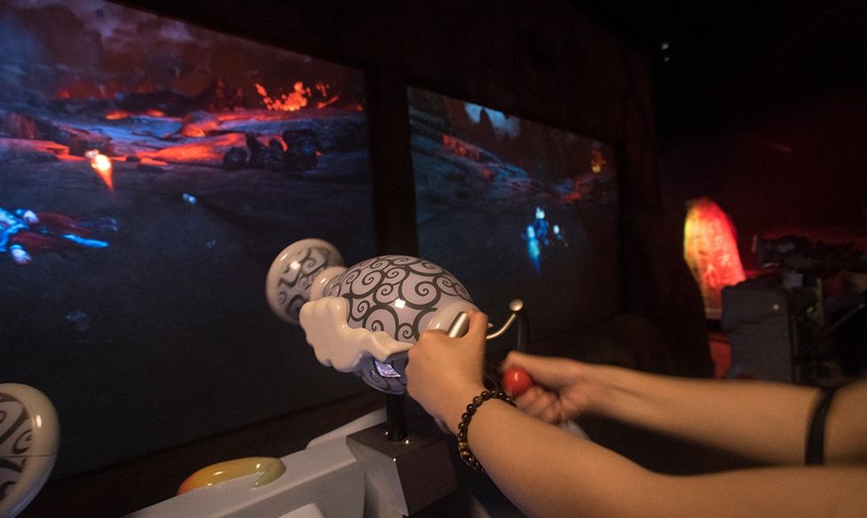 Wanda wanted to offer their guests an interactive experience with 3D projection screens and an unprecedented accuracy and quality. They also requested that the ride technology have easy maintenance and must be very reliable. Lagotronics Projects delivered and installed the complete interactive system: shooters, on-board electronics and monitors, server racks and the complete show control. We also provided some amazing special effects, such as ice-cold and warm breezes, seat shakers and the sound in the ride (both background and game sound).