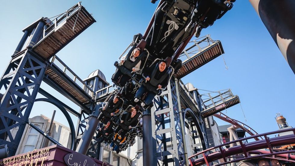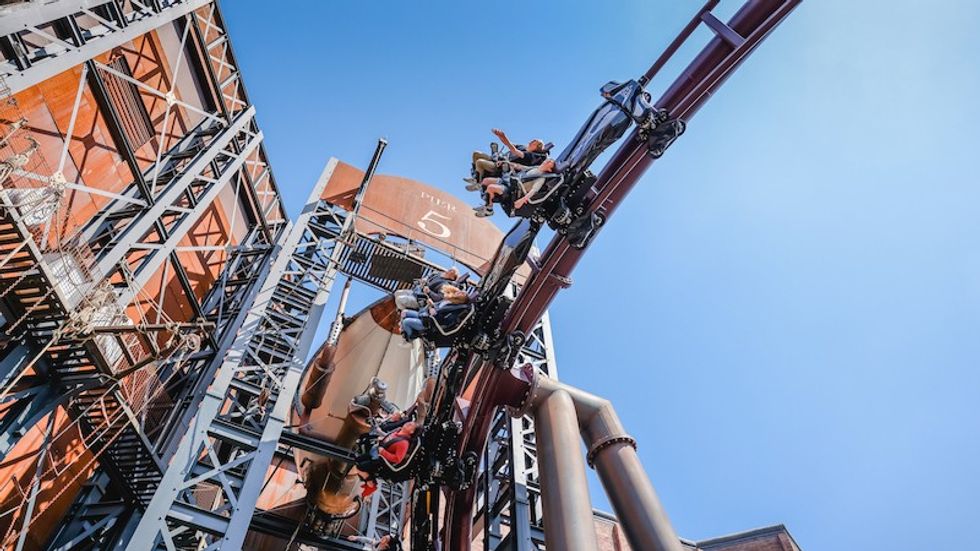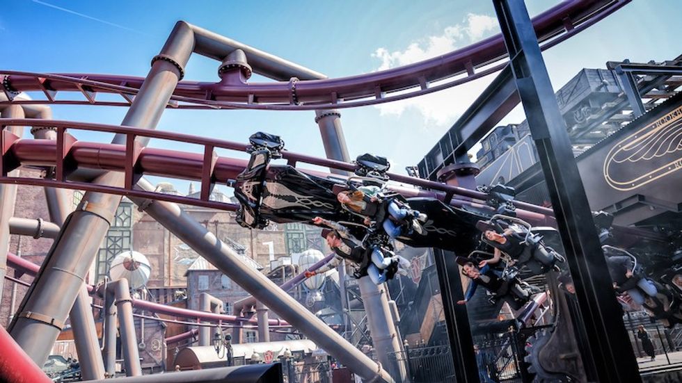 Prepared to get launched, the track and seats are turned 90 degrees creating a smooth transformation from dark ride to flying coaster from where the flight begins and riders experience inversions, air time moments, near miss moments and a lot more. With their arms stretched out, face down and parallel to the track, this is as close as it gets to flying like superman!