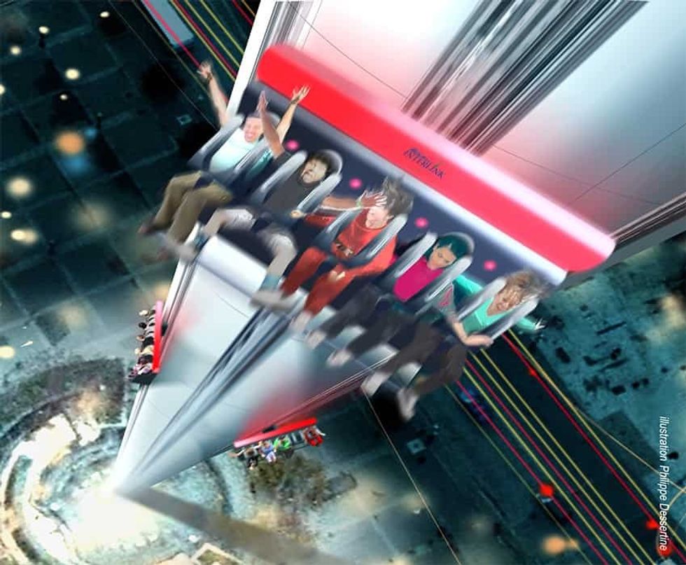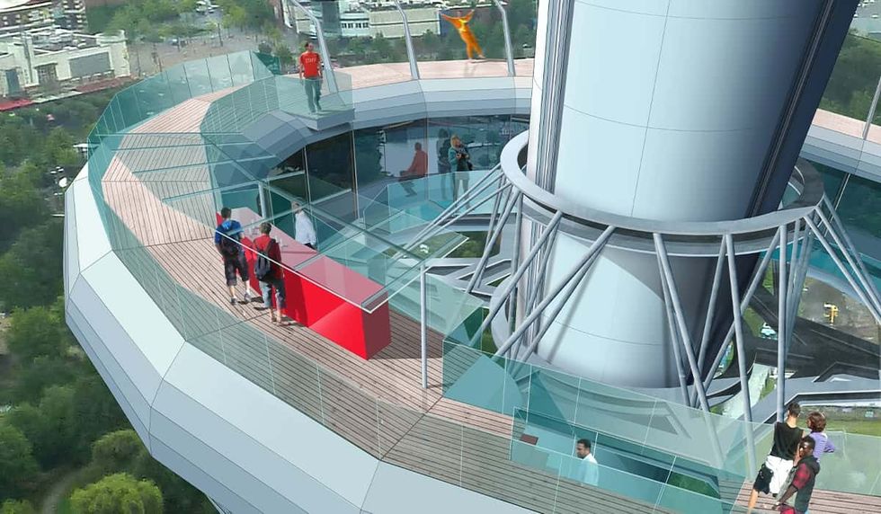 The new generation of towers features a solid steel column and a double or triple level gondola.The upper level is an open air café area, the middle level is the panoramic lounge and the lower level features a sky walk on which riders can walk around on a glass floor which increases the sensation of the ride and adds a highly exciting element to the experience.