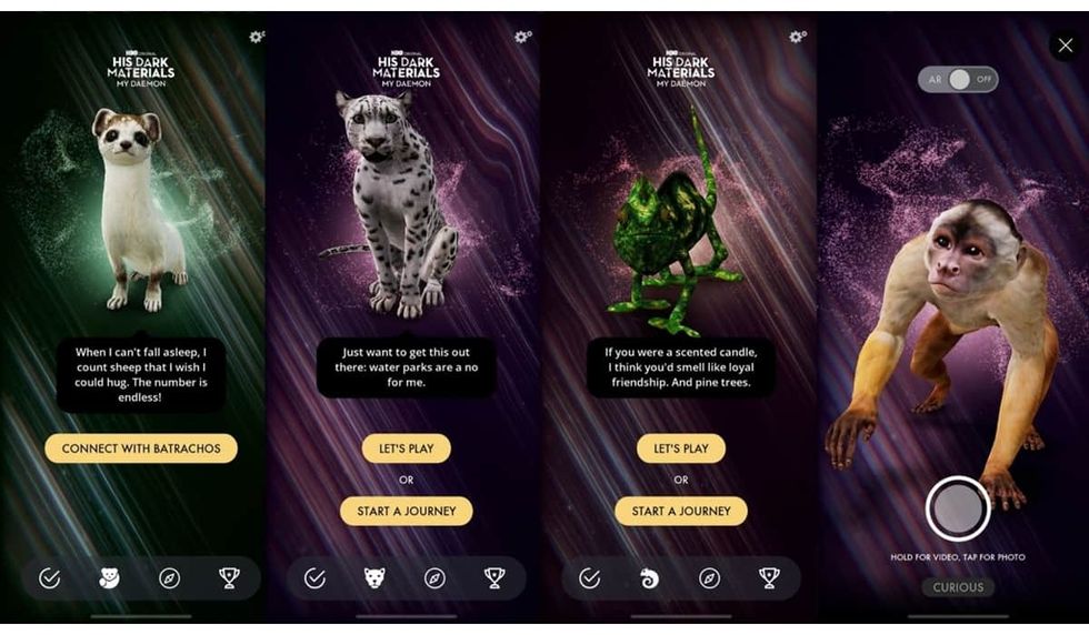 Inspired by the series in which daemons are unique to each person, the app features a variety of possible combinations of animal type, skin, fur pattern, and personality, which are determined through a short, visually engaging introductory quiz. Users gradually unlock new AR animations as rewards and can share photos and video of interactions with their daemons to social media feeds.