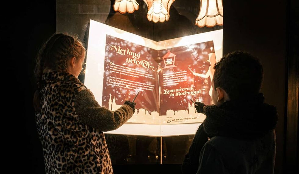 In the city center of Roermond, children can use a magic wand to light up lighting in show windows, the large Christmas tree, extra street lighting and illuminated 3D objects. It is an interactive outdoor route and a total of 40 interactive magic targets have been implemented. When a child enchants an object with the magic wand, the light stays on for 15 seconds and in this way the city center of Roermond is beautifully illuminated.