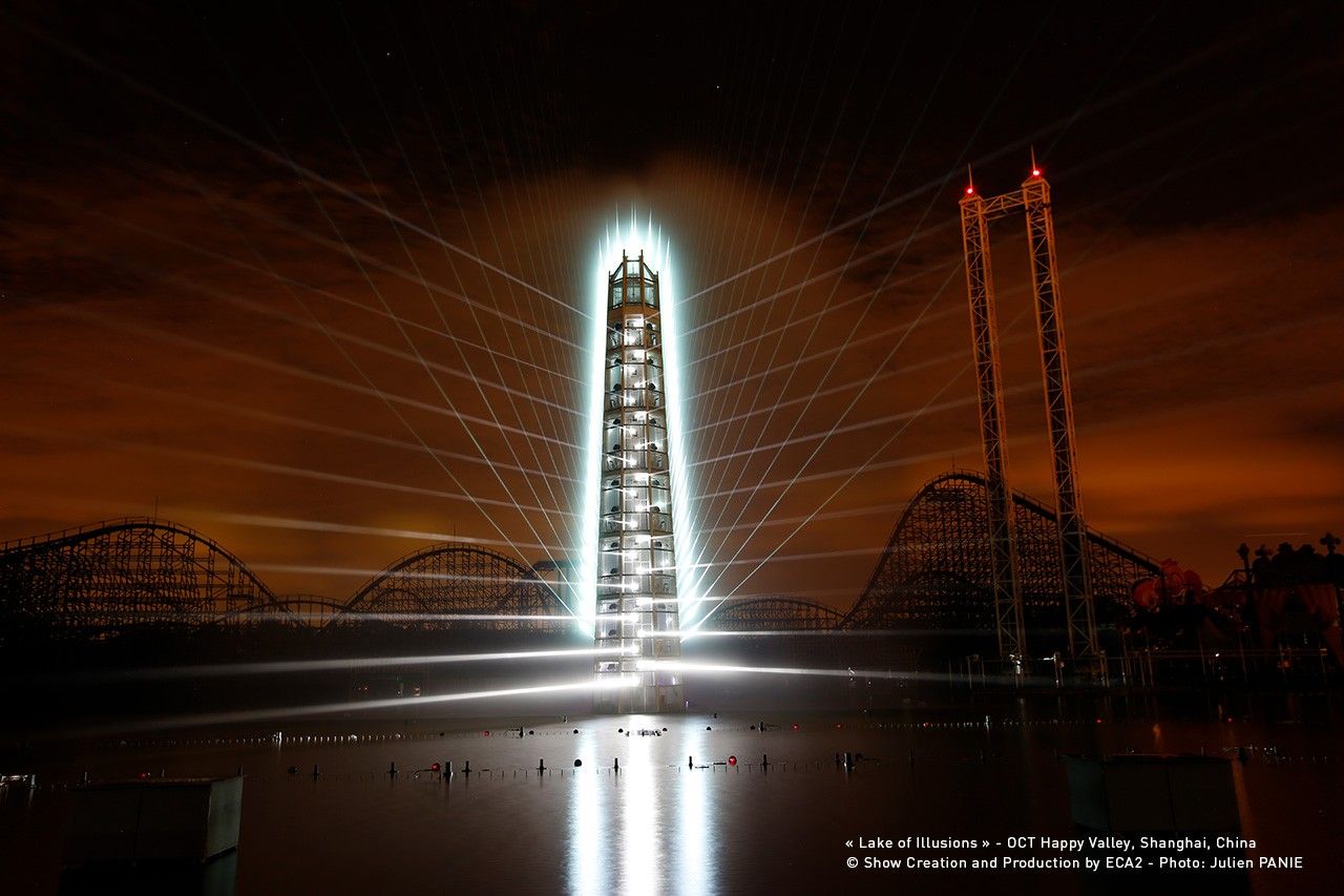 Where poetic storytelling meets offbeat architecture.Lake of Illusions is a permanent nighttime spectacular built at the heart of Happy Valley amusement park in Shanghai. This exciting attraction is a symbol of modernity and an icon of contemporary culture.