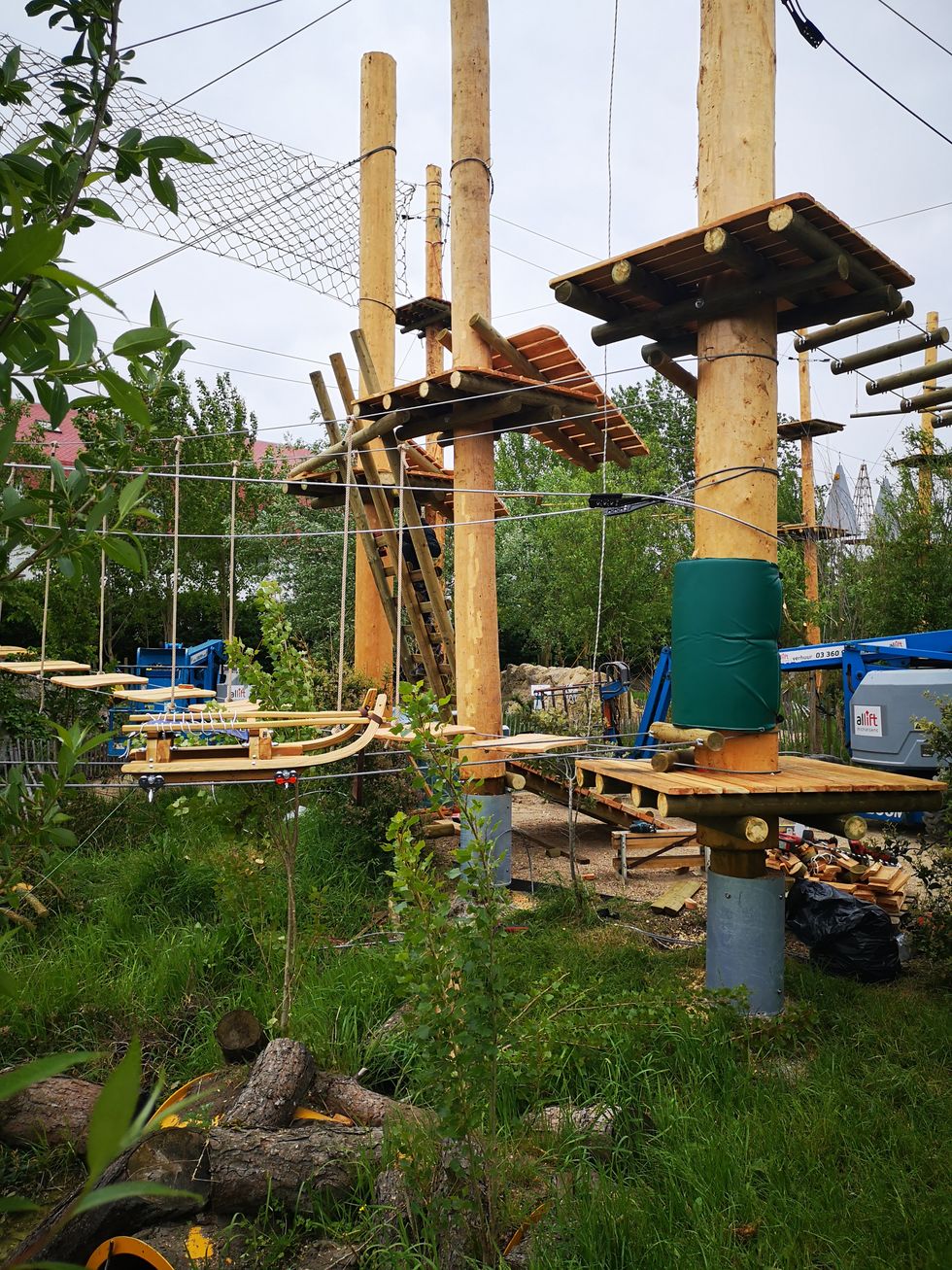 De Kegel X-trem Parc is set to open in Middlekerke, July, 2018. This seashore aerial adventure park will feature 4 Zip lines and 5 challenge courses with 54 obstacles. Cool features like bike on the cable and snowboard, complement nets and swings. There are varying degrees of difficulty with platform heights at 2m, 4.5m and 7.5m.