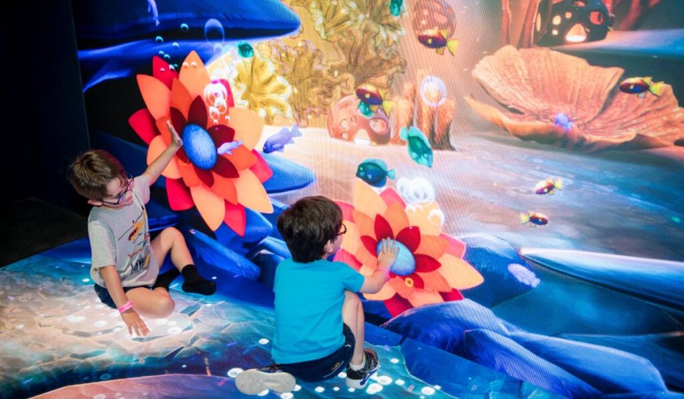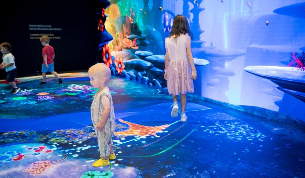 In this fully interactive, immersive, multi-sensory experience, children explore three different landscapes, Underwater, Jungle, and Sky World, filled with sound, motion, and surprising effects. The space encourages exploration and discovery, teamwork and pattern learning.