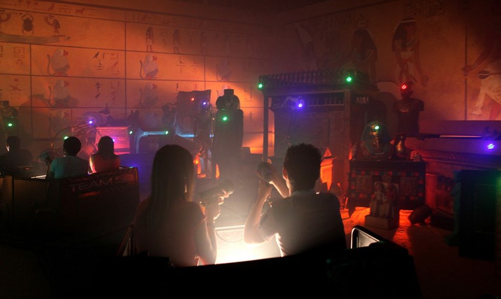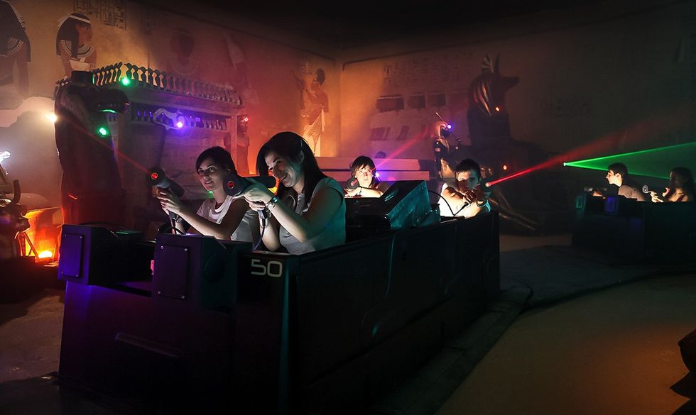 Ramses Il Risveglio is one of the largest interactive dark rides in the world, featuring a Continuous Loop Ride System with 50 carriages for four people. This existing ride at Gardaland has undergone a complete metamorphosis and has been fitted with Interactive Ride Technology, audio, video, lighting, and special effects by Lagotronics Projects. The end result is an attraction that will set pulses racing. Ramses Il Risveglio has a very high capacity, and this is essential. The competitive element ensures that many visitors will be so enthralled that they will want to improve on their high score.