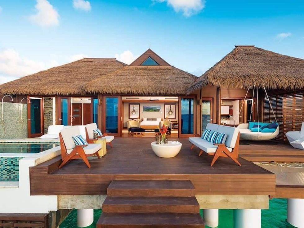 A first-of-its-kind in the Caribbean, these innovative luxury Over-the-Water Villas feature Safari's synthetic style thatch.