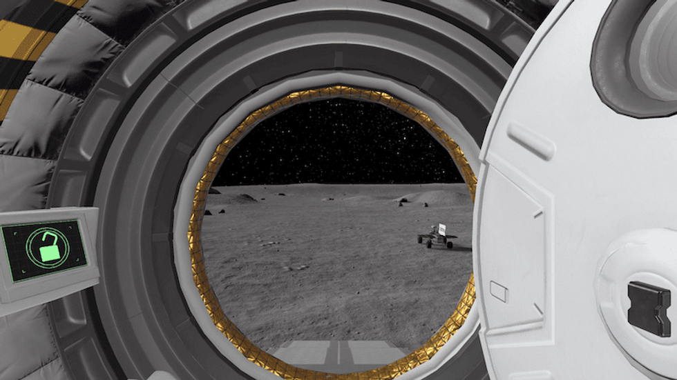 Key CG assets include the astronaut’s own body (seen when the user looks down at themselves in headset); the Moon lander; rover; and all of the terrain. Drawing on NASA data from both Apollo 11’s mission and today, as well artistic interpretations of near-future space travel, Framestore’s artists struck a balance that sets a believable setting for the experience - all the time optimised for real time mobile VR.