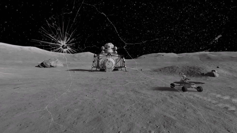 The mission sees the user land on the Moon’s surface, exit the lander, and plant their flag - with a couple of dramatic surprises along the way. Developing an experience with 4D mechanics at its core raised fresh challenges for Framestore’s VR developers, for whom 4D elements are typically an enhancement, not a driver, in virtual narratives.
