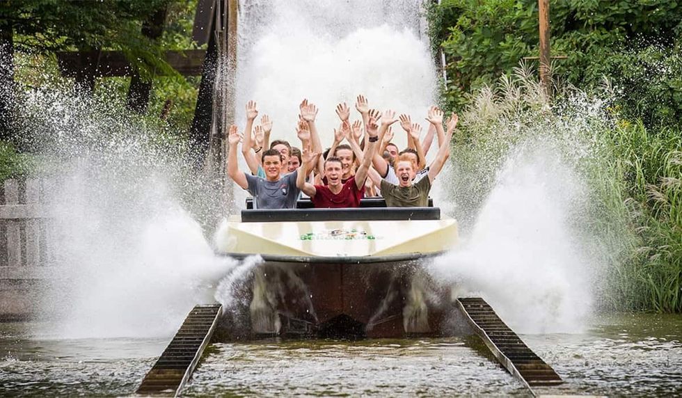 A bridge or platform positioned next to or over the splash zone can be integrated into the attraction, providing some additional interest for spectators getting wet from the splash produced by the boats.