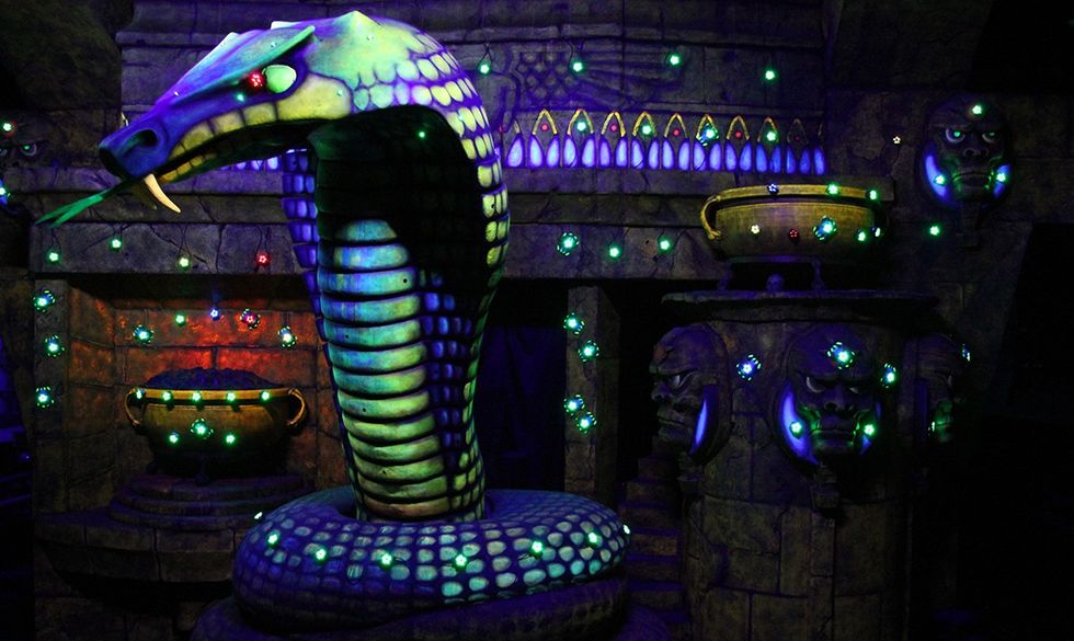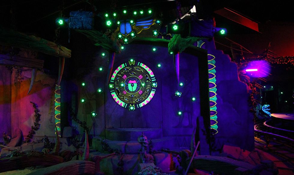 Tomb Blaster is a great ride, where adventurers are on a mission to battle the Curse of the Mummy. Ride through the Ancient Egyptian labyrinth armed with a infra-red gun to shoot frightening mummies and scarab beetles and rid the tomb of its evil curse. What will you score?