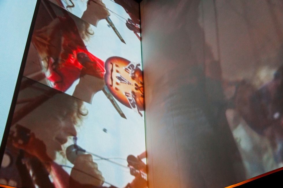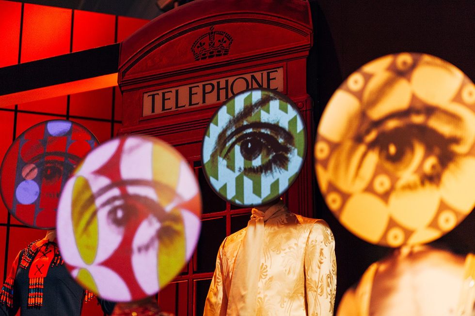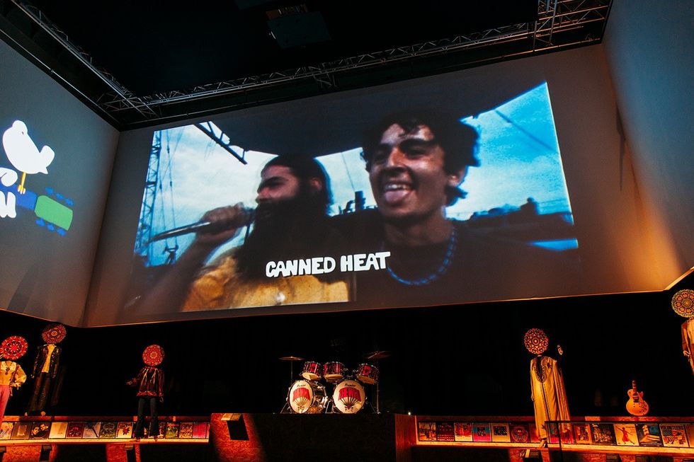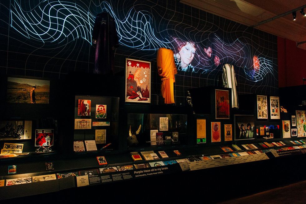 Objects were drawn from the breadth of the V&A’s varied collections, alongside important loans to highlight connections between people, places, music and movements across the UK, Europe and the USA. The objects were immersed amongst media relevant to the period and enhanced by an engulfing audiovisual experience that conjured up the spirit of the time. Major highlights include the cinematic Woodstock documentary space and multiple supported projection screens that were combined to create a dramatic multi-screen ‘performance’. Supported by a Sennheiser system coordinating headphone-delivered audio, this exhibition balances academic integrity with mainstream entertainment appeal.