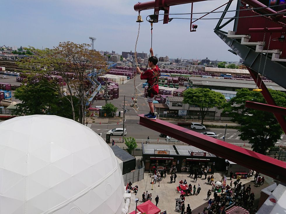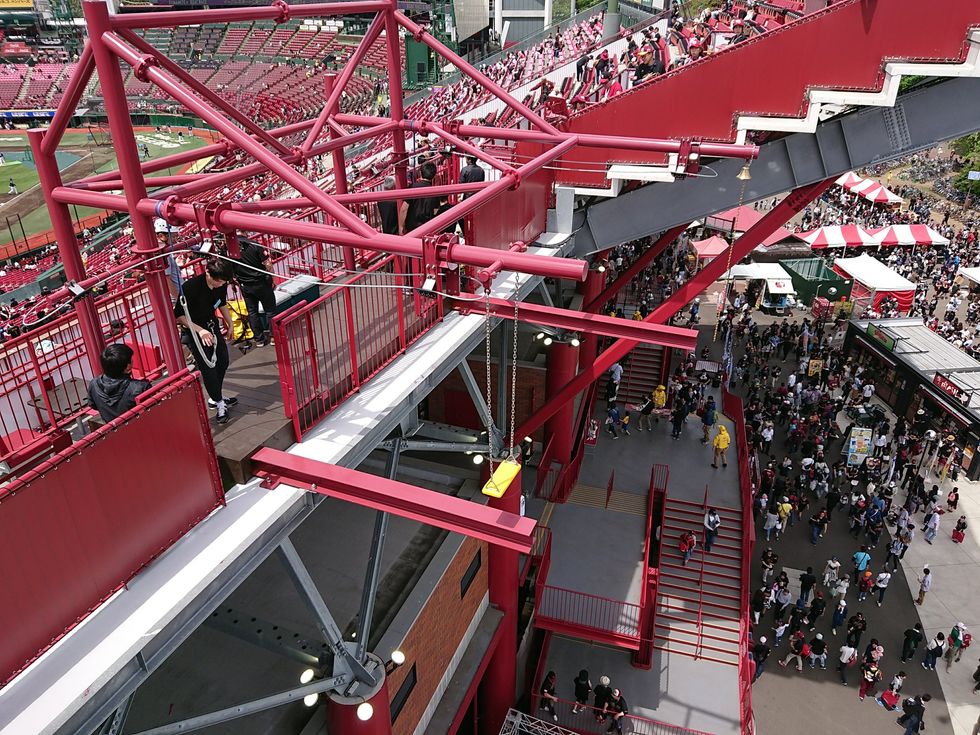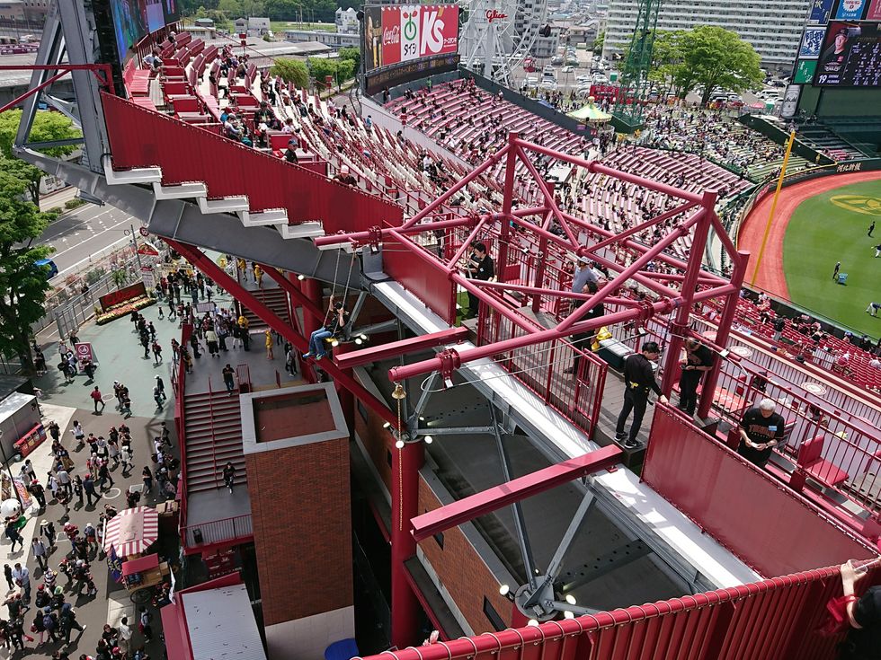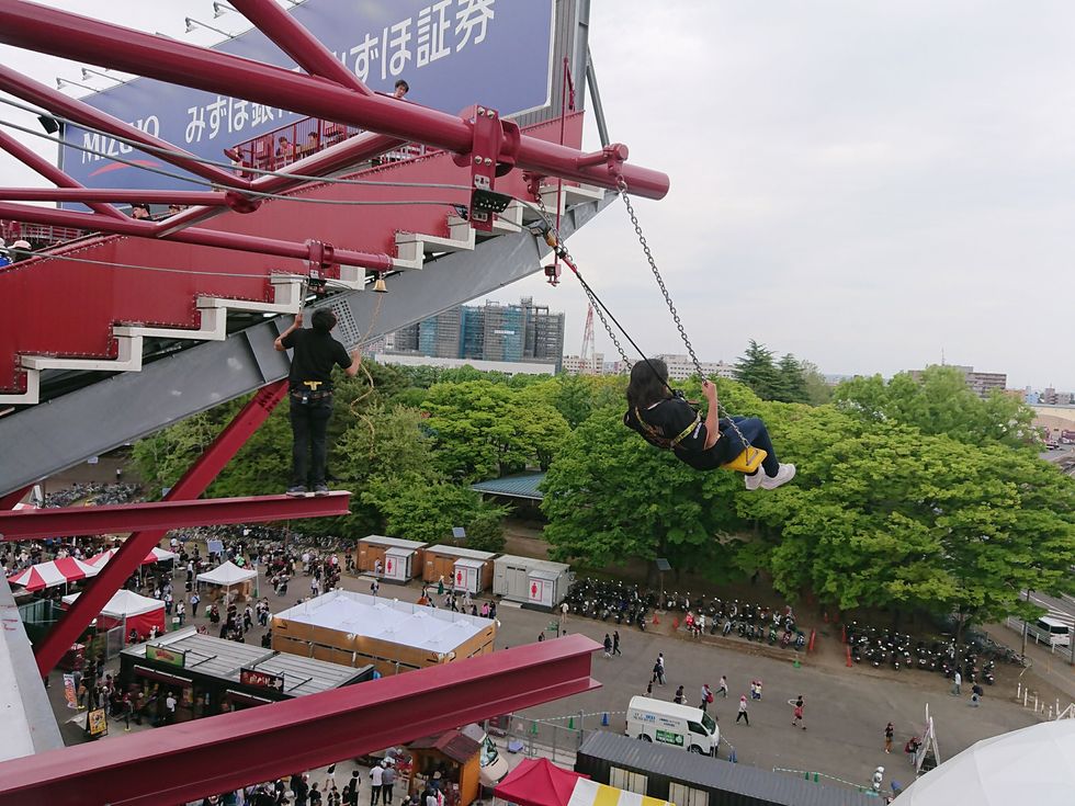 The Rakuten Seimei Park Miyagi 楽天生命パーク宮城 is primarily used for baseball as the home field of the @Rakuten__Eagles. Since May 4th 2018 at a height of 23m visitors of the Baseball stadium can ring the bell or swing above the plank, secured by #Saferoller. #Swing