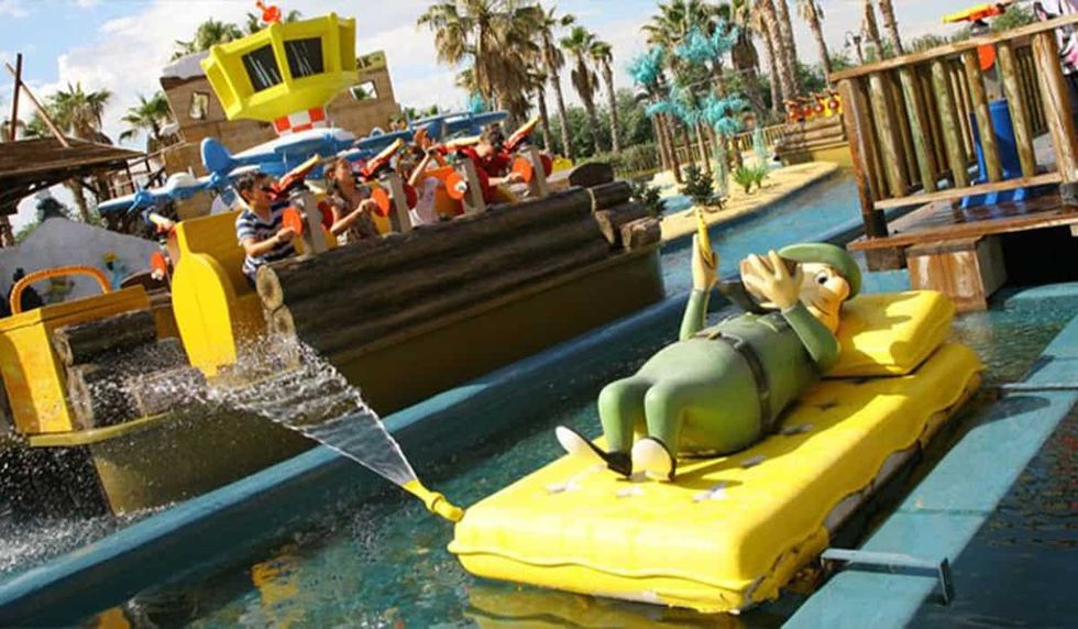 Water Battle’s appeal is further enhanced by targets integrated into the theming for guests to fire at and water cannons set around the circuit for spectators to shoot at boats, as well as various water effects along the ride, such as: