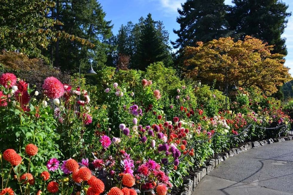 The garden on Vancouver Island welcomes more than one million annual visitors. Guests enjoy Italian and Mediterranean gardens, home to 85 varieties of plants and 110 plant species, respectively. The Japanese Garden features maple and beech trees and Himalayan blue poppies. The Rose Garden presents a collection of 2,500 floribundas, ramblers, climbers and hybrid tea roses.