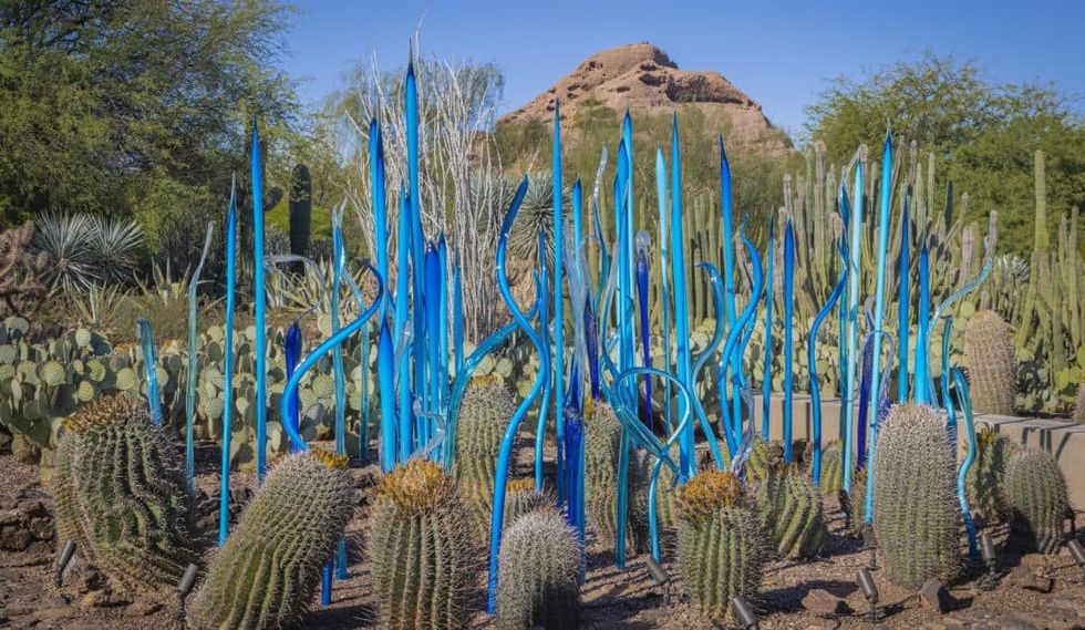 At Desert Botanical Garden, 50,000 desert plants can be found nestled in the red rocks of Phoenix, Arizona. Visitors can enjoy five thematic trails to explore plants, including cacti, succulents and desert wildflowers. As part of the visitor experience, the botanical garden offers art exhibitions, temporary installations and festive events.