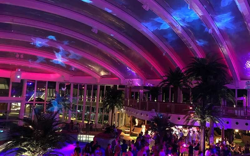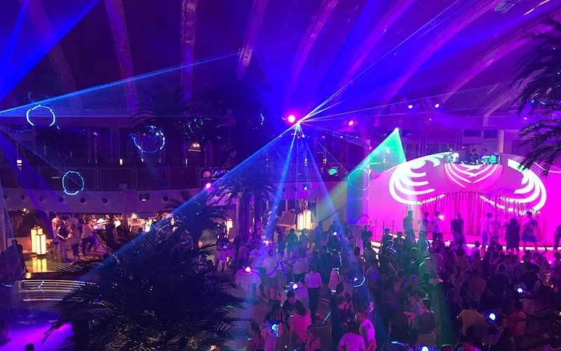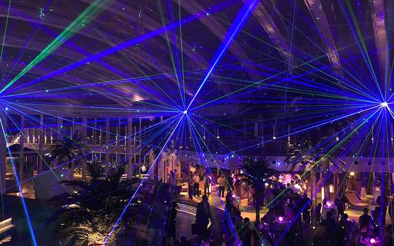 A trademark feature of AIDA Cruises, the enhanced Theatrium with its signature round stage had been equipped with five laser systems integrated into the stage show byEmotion Media Factory.