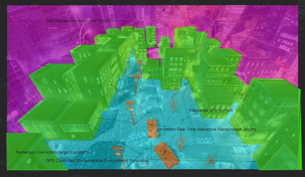 To put this in context, in 2014 I developed the REC-TTS – The Reconfigurable Environment Combat - Tactical Training Simulator (REC Room). This combines GPS-enabled projection towers, satellite laser scanning and photogrammetry technology, LiDAR enabled drones, game engines, VFX, and physical effects.
