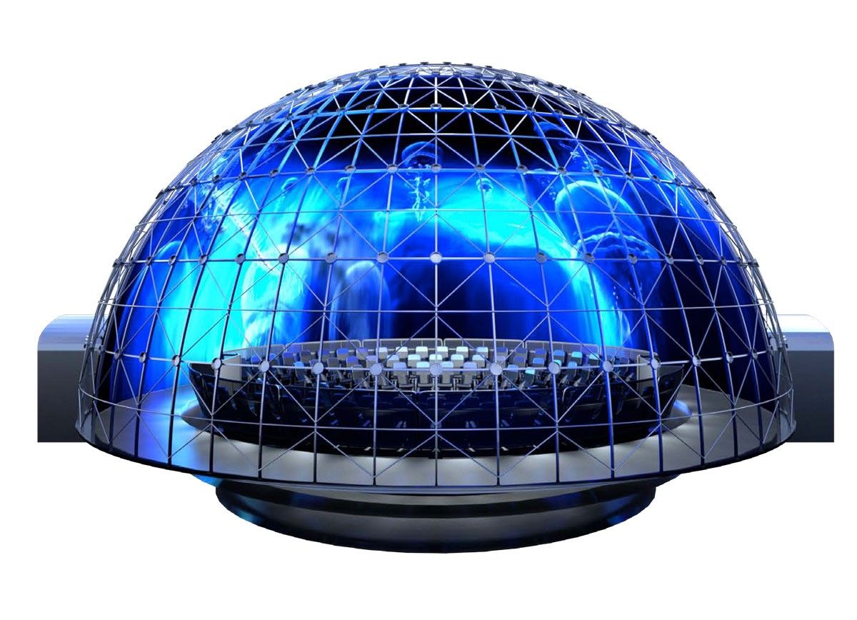 Developed in partnership with Falcon’s Creative Group and Kraftwerk Living Technologies, CircuMotion® is a motion-base platform within a dome-shaped theatre that delivers 2D or 3D 360°media content.