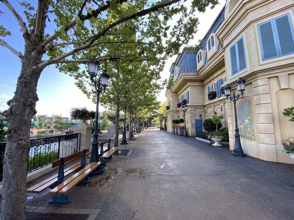 The mini-land features the decomposed granite often found in Parisian parks and gardens, Remy motifs in the metalwork, and facades that evoke the French city.