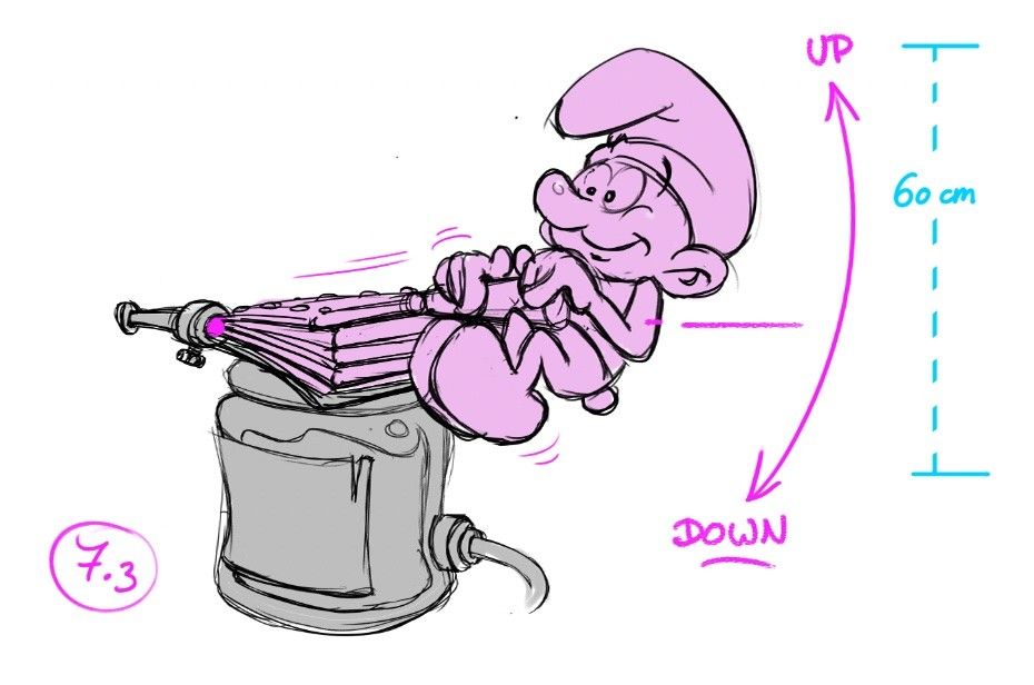 Plopsa and Holiday Park chose the Dutch design and build firm Jora Vision to create the themed environment for this new adventure, based on the firm's 35 years of experience creating immersive dark rides. With a ride spanning 160 metres and two floors, there is a lot of custom theming to be produced. Additionally, as the ride is based on the latest 3D movies of the Smurfs, Holiday Park and Plopsa are looking for a specific style in the environment.