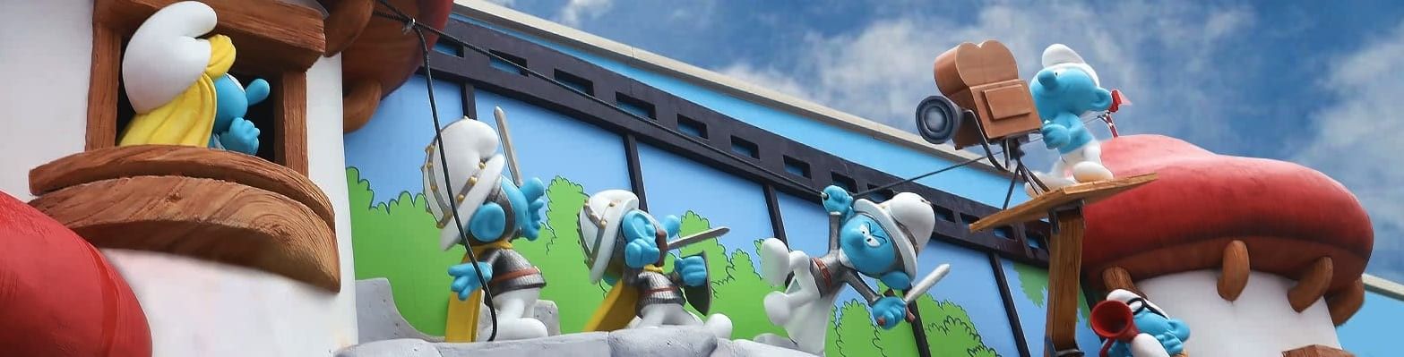 • Blast Off Zone. A big red airship sits over this family-friendly area of the park. Attractions include The Smurfs Theatre, The Smurfs Partyland (playground and car ride) and Adventurers Bumper Blast (bumper cars).