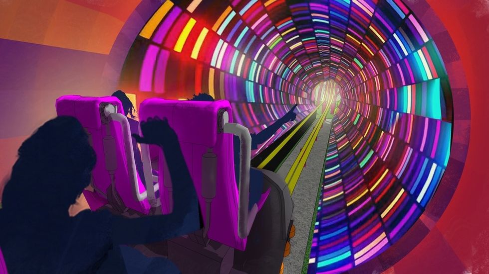 The newly themed trains will launch forward at first, rise about halfway up the top-hat before rolling back and getting launched backwards up the reverse spike, only to stall looking straight down at the ground. Falling back to earth and into the launch track again, the trains will be propelled to 120mph to travel up and over the top-hat element to complete the ride course.