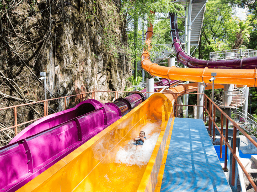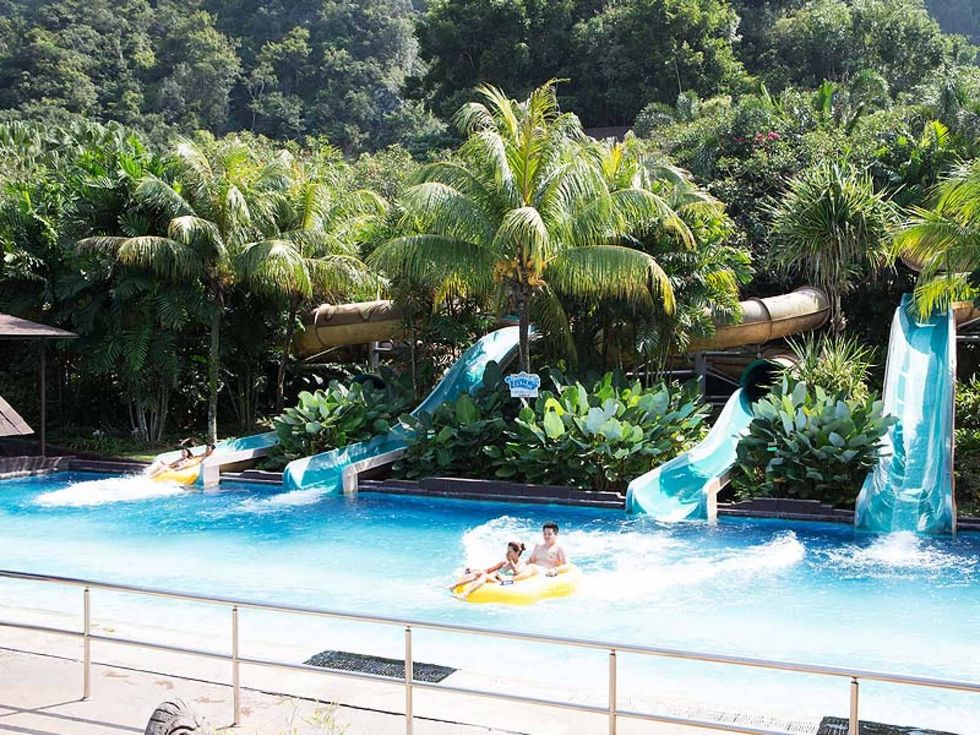 The water park’s attractions feature Sandy Bay and Jungle Wave Bay, the biggest wave pool in Malaysia. There’s also an Adventure River and Kids Explorabay, a children’s zone with waterslides and an interactive play area. Cliff Racer is a thrilling slide experience, and Tube Raider is the longest inflatable tube ride in Malaysia.