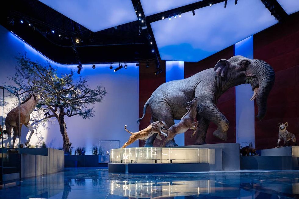Elsewhere, semi-translucent models of today’s endangered animals are illuminated in a display of present species fading away. A Tasmanian biome in the Our World gallery depicts life on our planet and, outside, more than 100 sculptures of animals from the Arabian Peninsula trace the region’s history.